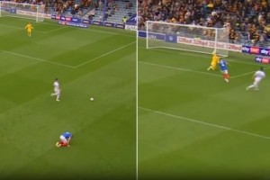 當(dāng)時(shí)樸茨茅斯后衛(wèi)康納-肖內(nèi)西正沖刺攔截一個(gè)自由球時(shí)突然因傷減速,這位球員蹣跚幾步后痛苦倒地,但他的不幸卻成為布朗的幸運(yùn),謝周三前鋒在無(wú)人盯防的情況下得球,徑直沖向樸茨茅斯球門(mén)。