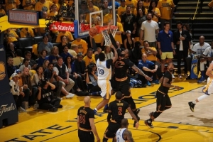 在總決賽的總比分戰(zhàn)平2-2之際,庫里率領(lǐng)勇士在主場拿下了系列賽的天王山之戰(zhàn);盡管詹姆斯得到了全場最高的40分,外加14籃板11助攻的大號三雙,但庫里在末節(jié)關(guān)鍵時(shí)刻站了出來,獨(dú)得17分,徹底撲滅了騎士反撲的勢頭。