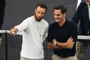 他與費(fèi)德勒以及參賽選手們進(jìn)行了合影,還拋硬幣為比賽“開球”。
