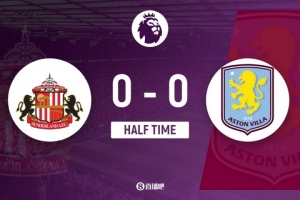 傷停補(bǔ)時3分鐘。上半場比賽結(jié)束,桑德蘭0-0阿斯頓維拉。
