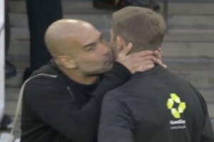 體育資訊9月22日訊?阿森納vs曼城第90分鐘,瓜迪奧拉場(chǎng)邊和裁判交流,還親了一口裁判的臉頰!