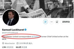 盧克赫斯特的個人賬號簡介已經(jīng)改為:“太陽報曼聯(lián)跟隊記者,前曼晚首席曼聯(lián)跟隊?!?/p>