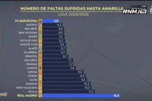 體育資訊09月23日訊 在新一期節(jié)目中,皇馬TV對比了各隊犯規(guī)數(shù)與黃牌數(shù)的情況,其中皇馬的對手平均16次犯規(guī)才會獲得1張黃牌,西甲最多,同時皇馬每6.6次犯規(guī)就會獲得1張黃牌;而巴薩的對手平均3.8次犯規(guī)就會獲得1張黃牌,西甲最少。