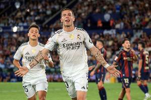 體育資訊09月24日訊 西甲第6輪,皇馬客場4-1大勝萊萬特,18歲的皇馬小將馬斯坦托諾首發(fā)出戰(zhàn)71分鐘,收獲加盟球隊(duì)后的首粒進(jìn)球。