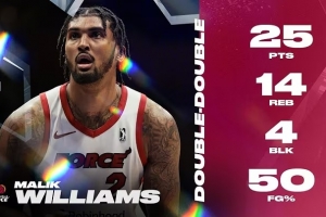 威廉姆斯在2023-24賽季為猛龍隊出戰(zhàn)了7場比賽。上賽季,他在發(fā)展聯(lián)盟場均能得到14.8分9.1籃板1.3次蓋帽1.2次搶斷。