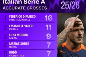 體育資訊9月26日訊 據(jù)Squawka的數(shù)據(jù)統(tǒng)計(jì),本賽季意甲聯(lián)賽,國(guó)米后衛(wèi)迪馬爾科16次精準(zhǔn)傳中,排名意甲第一,AC米蘭中場(chǎng)莫德里奇9次,排名第三。