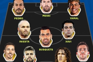 體育資訊9月26日訊 Onefootball列出了由拉瑪西亞青訓(xùn)球員組成的陣容,梅西、哈維、伊涅斯塔、亞馬爾在列。