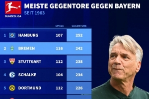 全文摘要:拜仁周五將戰(zhàn)不萊梅。德甲歷史數(shù)據(jù)顯示,漢堡和不萊梅是面對拜仁丟球最多的球隊,分別以252和242球位居前兩位。斯圖加特、沙爾克等隊也位列榜單,凸顯了拜仁在德甲的強勢攻擊力。
