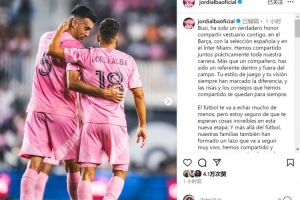 阿爾巴社媒曬出與布斯克茨的合照,并寫道:“布斯克茨,能與你在巴薩、西班牙隊(duì)以及邁阿密國際共用更衣室,這是我的莫大榮幸。我們幾乎整個(gè)職業(yè)生涯都并肩作戰(zhàn)。你不僅是隊(duì)友,更是場上場下的榜樣。你的球風(fēng)與視野始終獨(dú)樹一幟,那些歡笑與建議將永遠(yuǎn)銘刻于心。