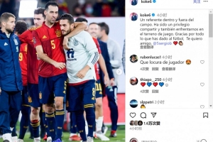 體育資訊9月27日訊 布斯克茨將在本賽季結束后退役,他在西班牙國家隊的隊友科克社媒發(fā)文致敬。