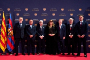 機(jī)構(gòu)副主席埃萊娜-福特、社交領(lǐng)域副主席安東尼奧-埃斯庫德羅、橄欖球主管何塞普-瑪麗亞-阿爾伯特、社交領(lǐng)域主管何塞普-伊格納西-馬西亞、女子足球主管哈維爾-普吉、手球主管董事瓊-索萊以及青少年足球主管董事瓊-索勒,共同在巴塞羅那籃球館舉辦的隆重儀式上完成了獎(jiǎng)?wù)骂C發(fā)。在諾坎普球館舉行的這場儀式上,巴薩吉祥物到場助興,兩位主持人以及大屏幕上的不同視頻播放也為活動(dòng)增添了氛圍。