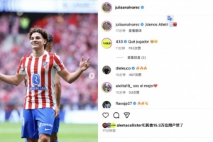 完美發(fā)揮率隊(duì)力克皇馬!阿爾瓦雷斯發(fā)文:加油,馬競(jìng)??