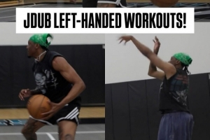 視頻中可見(jiàn),杰倫威用左手完成了拍球、投籃和單挑等一系列訓(xùn)練內(nèi)容。