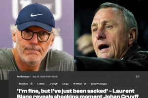 “于是我心里想:‘我要去巴塞羅那,然后簽約?!@很有趣,我當時甚至已經(jīng)拿到了合同。當我到達巴塞羅那時,克魯伊夫?qū)ξ艺f:‘好吧洛朗,你將與我們簽一份兩年合同,然后我們會踢這樣的足球。今天晚上我?guī)闳ヒ患也蛷d,我們聊聊具體怎么踢球?!且粋€小時后,他就被解雇了。