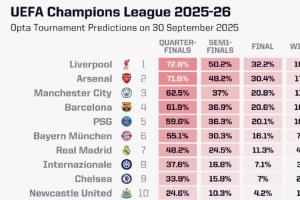 體育資訊09月30日訊 歐冠聯(lián)賽階段第二輪開賽在即,opta超級計算機更新了歐冠奪冠概率,其中利物浦位列榜首,阿森納、曼城分列二三。