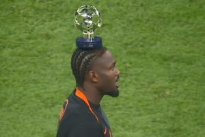 體育資訊10月01日訊 歐冠聯(lián)賽階段第2輪,國(guó)際米蘭主場(chǎng)3-0戰(zhàn)勝布拉格斯拉維亞,賽后圖拉姆當(dāng)選全場(chǎng)最佳,他還將全場(chǎng)最佳的獎(jiǎng)杯頂在頭頂。