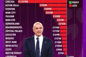 【盈利第一】英超俱樂部在列維時代的盈虧榜:熱刺盈利1.67億鎊,排名英超第一!??
