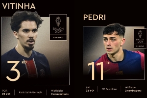 體育資訊10月02日訊 歐冠聯(lián)賽階段第2輪,巴薩主場(chǎng)1-2遭巴黎逆轉(zhuǎn)絕殺,今年金球排名第11的佩德里(22歲)和金球排名第3的維蒂尼亞(25歲)均首發(fā)出戰(zhàn)。
