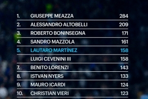 據(jù)國(guó)米官方統(tǒng)計(jì),勞塔羅為國(guó)米攻入158球,排名隊(duì)史射手榜第5位。
