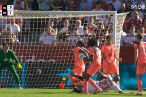塞維利亞球員投訴手球,隨后裁判指了指耳機,示意不是點球。