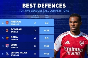 全文摘要:德國(guó)轉(zhuǎn)會(huì)市場(chǎng)統(tǒng)計(jì)顯示,本賽季五大聯(lián)賽場(chǎng)均丟球最少的球隊(duì)中,阿森納以場(chǎng)均0.3球高居榜首,AC米蘭以0.38球緊隨其后。羅馬(0.5球)、里昂(0.56球)和水晶宮(0.67球)分列三至五位,展現(xiàn)了各隊(duì)出色的防守表現(xiàn)。