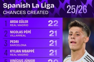 全文摘要:根據(jù)Squawka統(tǒng)計(jì),皇馬新星居勒爾以22次創(chuàng)造機(jī)會(huì)次數(shù),領(lǐng)跑本賽季西甲機(jī)會(huì)榜。他與佩佩、佩德里、姆巴佩等并列前茅的球員共同展現(xiàn)了西甲的進(jìn)攻創(chuàng)造力。