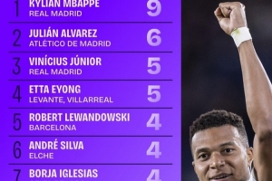 體育資訊10月7日訊 日前,Squawka統(tǒng)計(jì)了本賽季西甲射手榜,姆巴佩9球居首。