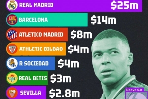 全文摘要:根據(jù)Sponsorlytix統(tǒng)計,西甲球隊衣袖廣告收入榜出爐?;蜀R以2500萬美元高居榜首,巴薩以1400萬美元位列第二。馬競以800萬美元排名第三,畢爾巴鄂競技與皇家社會并列第四,各獲400萬美元。其余球隊如貝蒂斯、塞維利亞等收入依次遞減,展現(xiàn)了西甲頂級球隊在商業(yè)開發(fā)上的巨大優(yōu)勢。