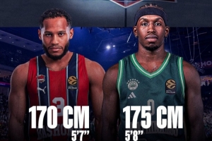 而比賽中發(fā)生了有趣的一幕,帕納辛納科斯身高1米75的小后衛(wèi)TJ-紹茨對(duì)上了對(duì)面身高1米70的馬基斯-諾埃爾。
