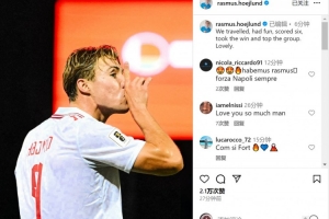 霍伊倫社媒曬出比賽照片,慶祝球隊取勝,配文:“我們遠(yuǎn)征客場,享受比賽,轟入6球,拿下勝利并領(lǐng)跑小組!太美妙了?!?/p>
