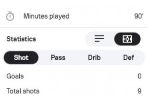 逆天表現(xiàn)!塔羅勞塔羅全場狂射9次,5次射正卻5次錯(cuò)失良機(jī),另有2次越位在身。
