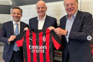 因凡蒂諾在社交媒體上寫道:“很高興與AC米蘭主席斯卡羅尼以及CEO富拉尼會面,一起探討了足球、國際賽事以及基礎(chǔ)設(shè)施等話題。”