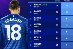 格拉利什 在 2025/26 賽季,出場(chǎng) 3 次,已貢獻(xiàn)了 4 次助攻