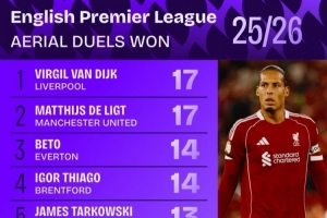 體育資訊9月3日訊 數(shù)據(jù)機(jī)構(gòu)squakwa統(tǒng)計了新賽季英超球員成功爭頂情況,兩位荷蘭中衛(wèi)并列榜首。