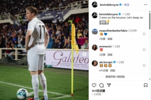 德布勞內(nèi)寫道“:連勝3場!讓我們繼續(xù)加油??”