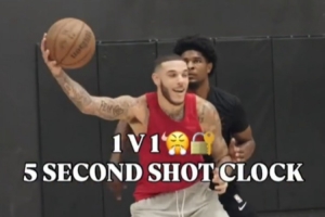 訓(xùn)練師曬騎士后衛(wèi)朗佐-鮑爾、開(kāi)拓者后衛(wèi)斯庫(kù)特-亨德森,以及另一位職業(yè)球員Milan Acquaah的單挑訓(xùn)練視頻,進(jìn)攻時(shí)間限時(shí)5秒。
