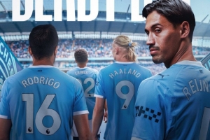 曼城官推發(fā)布德比戰(zhàn)海報(bào):哈蘭德、羅德里、賴因德斯亮相伊蒂哈德