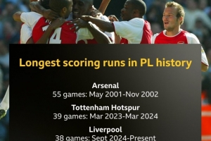 全文摘要:利物浦在英超1-0勝伯恩利,將連續(xù)進球紀錄延續(xù)至38場,升至歷史第三。該紀錄僅次于阿森納的55場和熱刺的39場。此前利物浦還有兩次36場的紀錄,分別排名第四與曼聯(lián)并列。