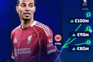 ?;倏四壳吧韮r(jià)7500萬歐,他在今夏以9500萬歐的轉(zhuǎn)會費(fèi)加盟利物浦,并且在賽季初表現(xiàn)不俗。德轉(zhuǎn)給出?;倏烁潞蟮纳韮r(jià)選項(xiàng)分別有8000萬歐、9000萬歐以及1億歐。