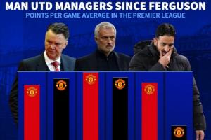 弗格森離任后曼聯(lián)各任主帥場(chǎng)均積分: