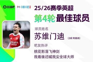 2025-2026賽季英超火熱進行中,體育資訊和咪咕體育聯(lián)合發(fā)起每輪英超最佳球員評選活動!第四輪評選結(jié)果結(jié)出爐,蘇維門迪頭頂腳踢梅開二度,幫助阿森納3-0大勝諾丁漢森林,獲得吧友超14萬票的支持,以絕對優(yōu)勢當選 【體育資訊X咪咕體育英超第4輪最佳球員】!