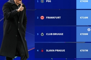 體育資訊9月16日訊 本賽季歐冠即將打響,德轉(zhuǎn)也根據(jù)聯(lián)賽階段對手平均身價盤點了各球隊賽程難易程度,其中巴黎對手的平均身價最高,具體如下:
