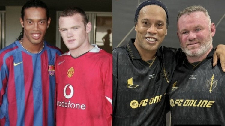 有網(wǎng)友曬出了魯尼和小羅在2005年為足球游戲FIFA 06拍攝廣告時(shí)的合影作為對(duì)比,顯然時(shí)光在兩人的身上都留下足夠的痕跡。