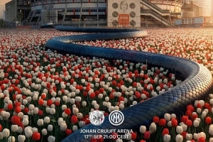 賽前,國(guó)米為此役發(fā)布視頻海報(bào),海報(bào)中,一條藍(lán)黑巨型靈蛇正游向阿賈克斯克魯伊夫球場(chǎng)。
