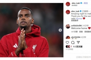 此役伊薩克首發(fā)出戰(zhàn),上演利物浦首秀,賽后他在社交媒體上寫道:“在美妙的夜晚迎來我的首秀,感謝紅軍球迷們的熱情歡迎!ynwa??”