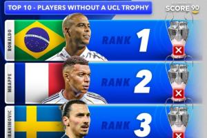 歐冠履歷空白球星TOP5:羅納爾多領(lǐng)銜 姆巴佩、伊布、阿圭羅、凱恩緊隨其后