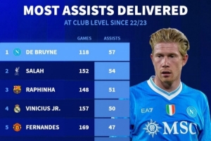 體育資訊9月19日訊 那不勒斯在昨晚歐冠焦點戰(zhàn)客場0-2不敵曼城,迎戰(zhàn)舊主的德布勞內(nèi)因戰(zhàn)術(shù)調(diào)整而早早被換下。不過《轉(zhuǎn)會市場》統(tǒng)計顯示,他仍然是最近3年俱樂部層面送出助攻最多的球員。