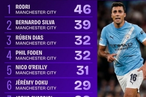 全文摘要:歐冠首輪進攻三區(qū)傳球數(shù)據(jù)出爐,曼城球員包攬前十。羅德里以46次傳球高居榜首,B席、魯本-迪亞斯等隊友緊隨其后。數(shù)據(jù)凸顯了曼城在比賽中強大的中場控制力和進攻組織能力。
