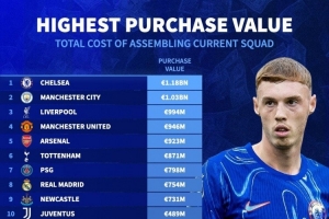 全文摘要:根據(jù)德國(guó)轉(zhuǎn)會(huì)市場(chǎng)數(shù)據(jù),切爾西以11.8億歐元的現(xiàn)有陣容總花費(fèi)高居榜首。曼城(10.3億)和利物浦(9.94億)分列二、三位。英超球隊(duì)在榜單上占據(jù)主導(dǎo)地位,曼聯(lián)、阿森納和熱刺也位列前十,展現(xiàn)了英超在球員投入上的強(qiáng)大實(shí)力。