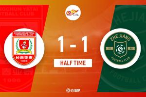 上半場補時4分鐘。半場戰(zhàn)罷,長春亞泰1-1浙江隊。